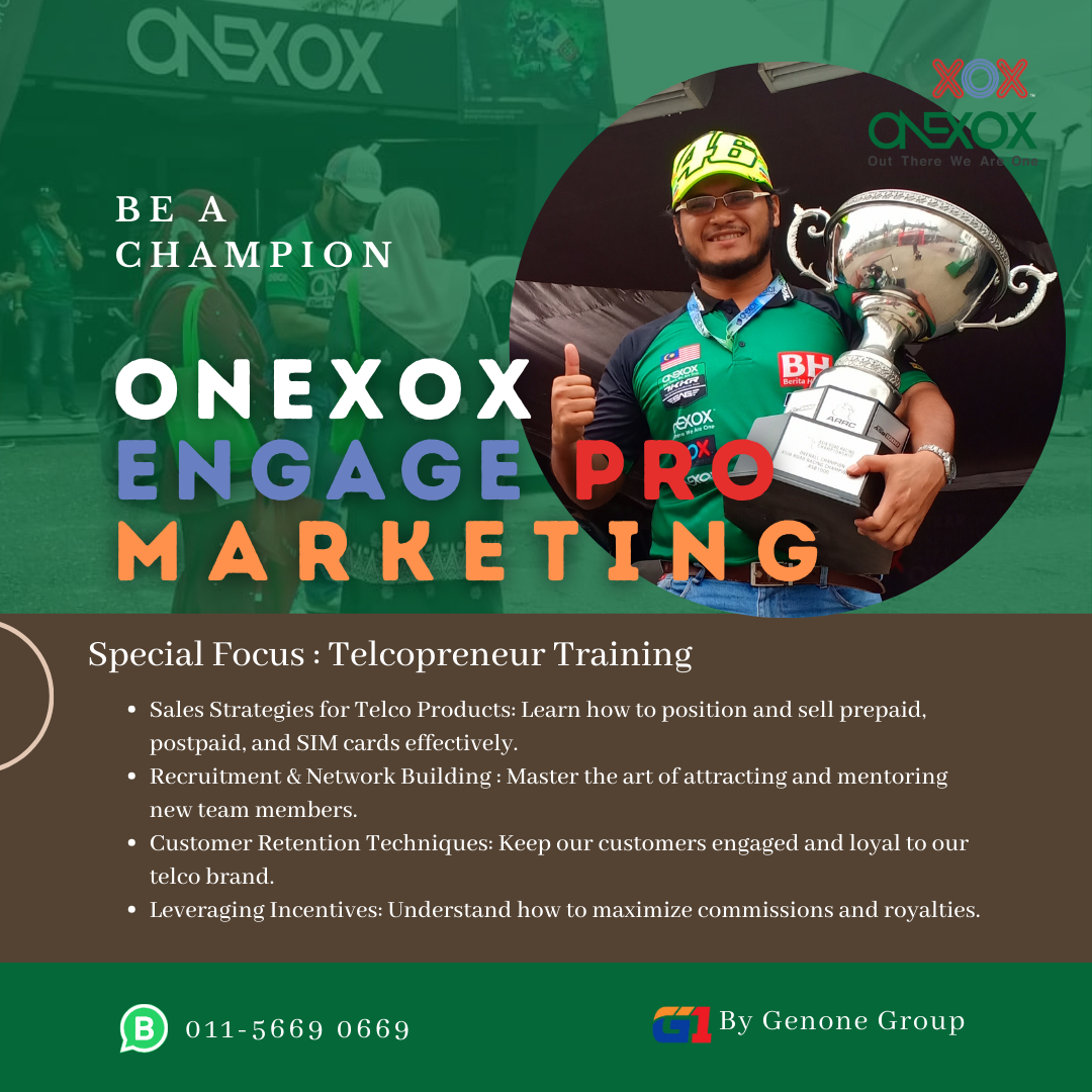 You will be guided to become a Telcopreneur Partner and attend weekly Digital Marketing classes with the Genone ONEXOX Team!